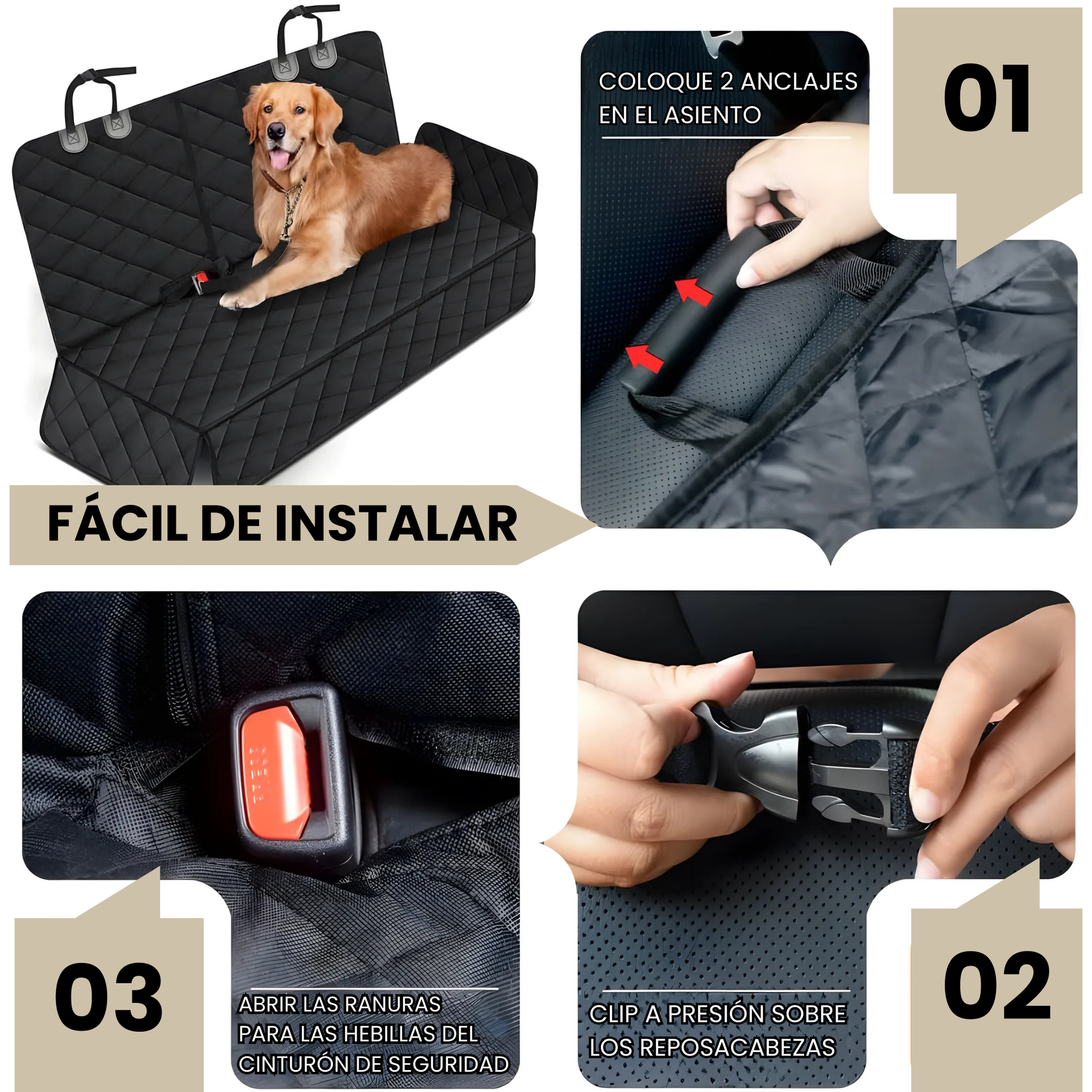 Olvídate de los pelos, la suciedad y los arañazos en los asientos. Con nuestra funda protectora de coche, cada trayecto será más limpio, seguro y cómodo, tanto para tu mascota como para tu familia.