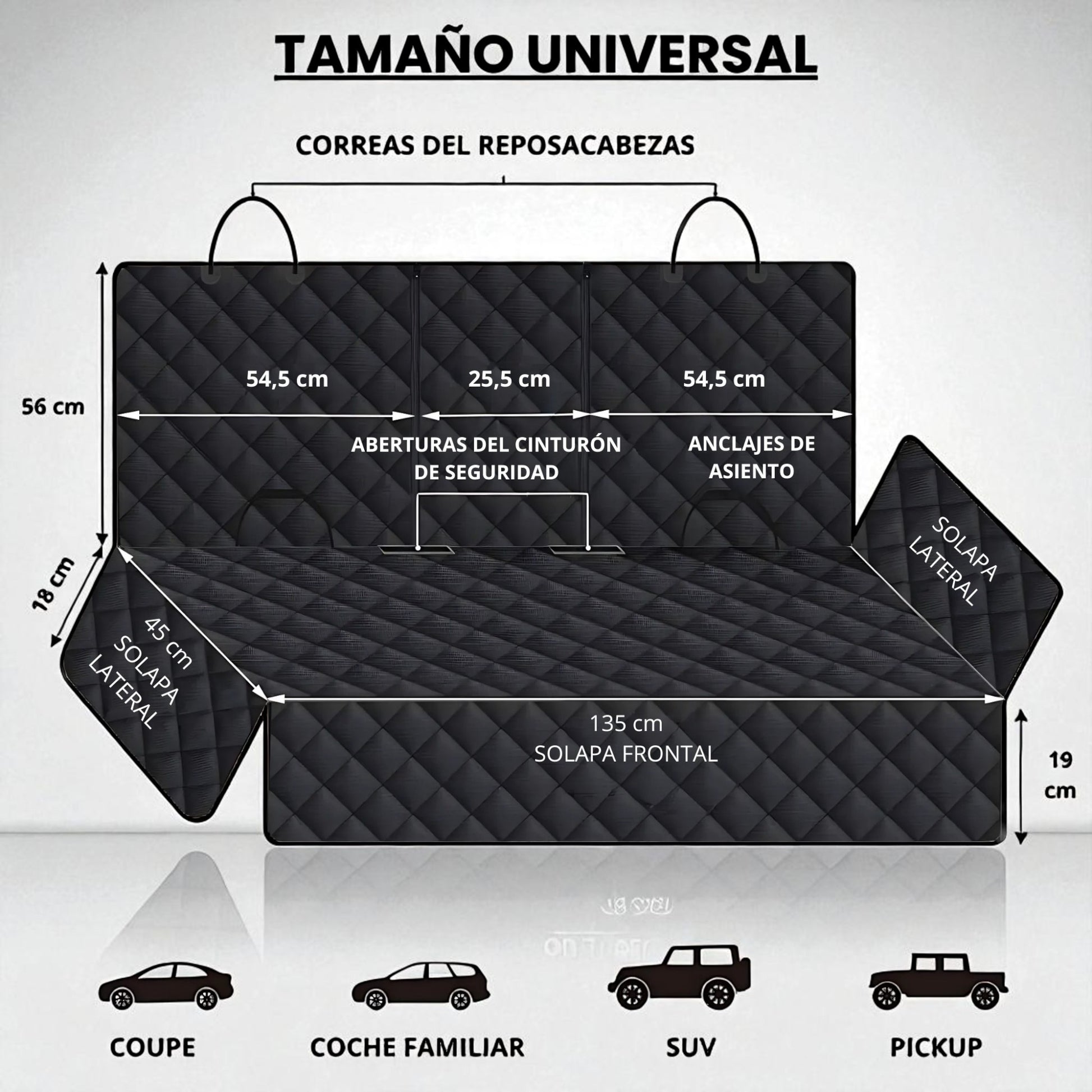 Tamaño universal: 135 x 120 cm, compatible con la mayoría de autos, camionetas y SUV, incluso con asientos de bebé.